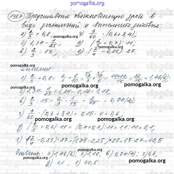 Готовые ответы - Математика 5 класс Виленкин Н.Я. - глава 2 1357