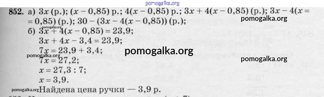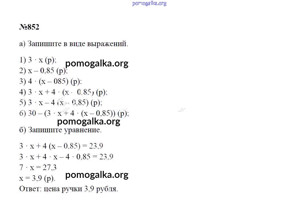 Готовые ответы - Математика 5 класс Зубарева И.И. - упражнение 852