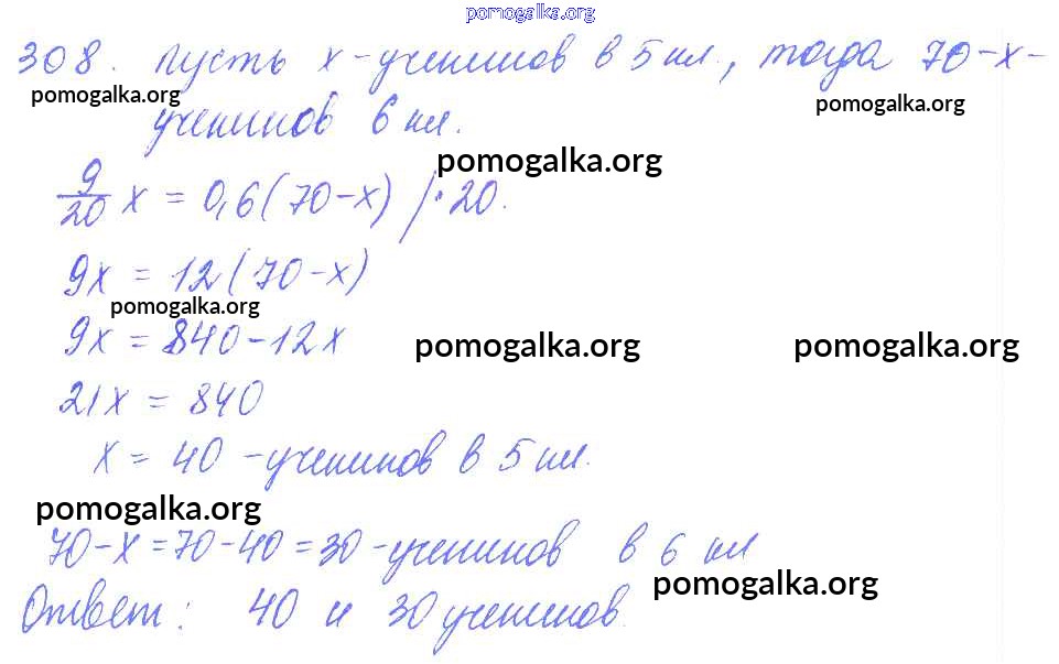 Готовые ответы - Математика 6 класс дидактические материалы Чесноков А.С. - вариант 1 самостоятельная работа 308