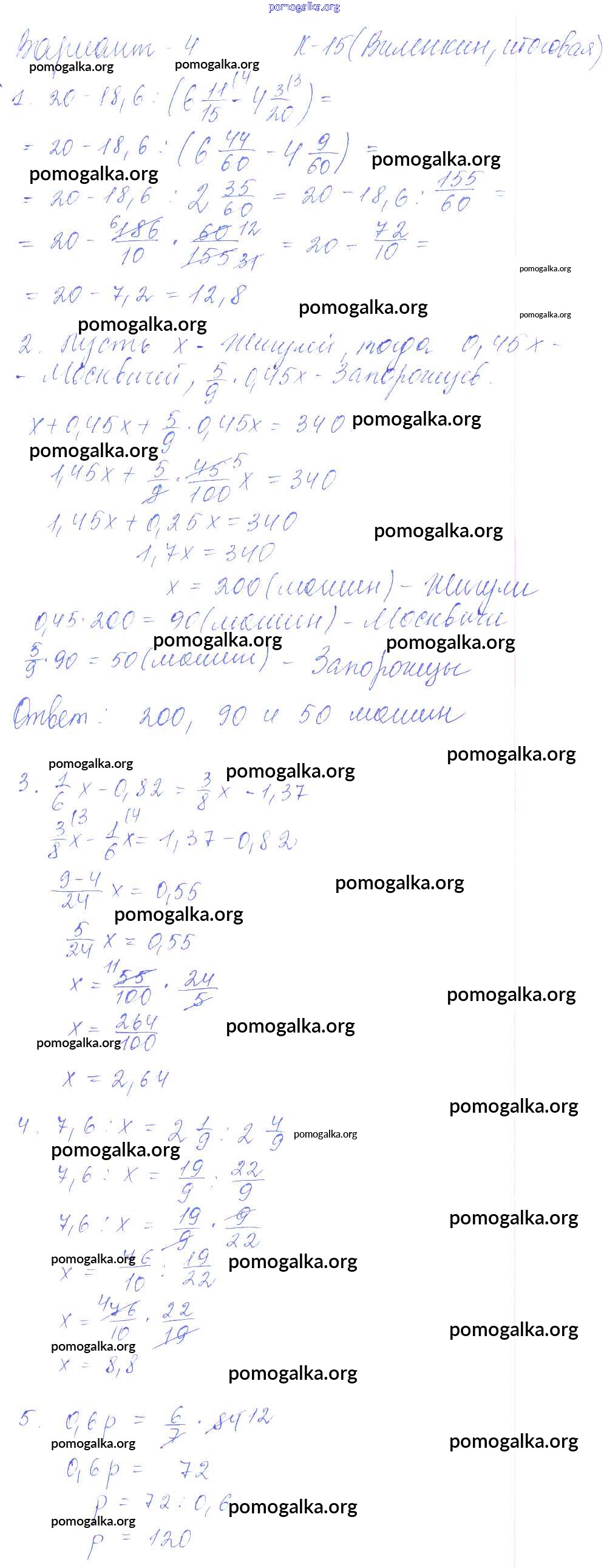 Готовые ответы - Математика 6 класс дидактические материалы Чесноков А.С. - кр-15 к учебнику Виленкина 4