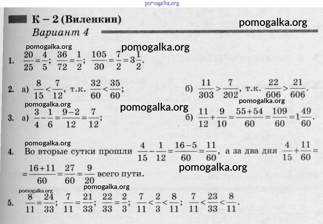 Готовые ответы - Математика 6 класс дидактические материалы Чесноков А.С. - кр-2 к учебнику Виленкина 4