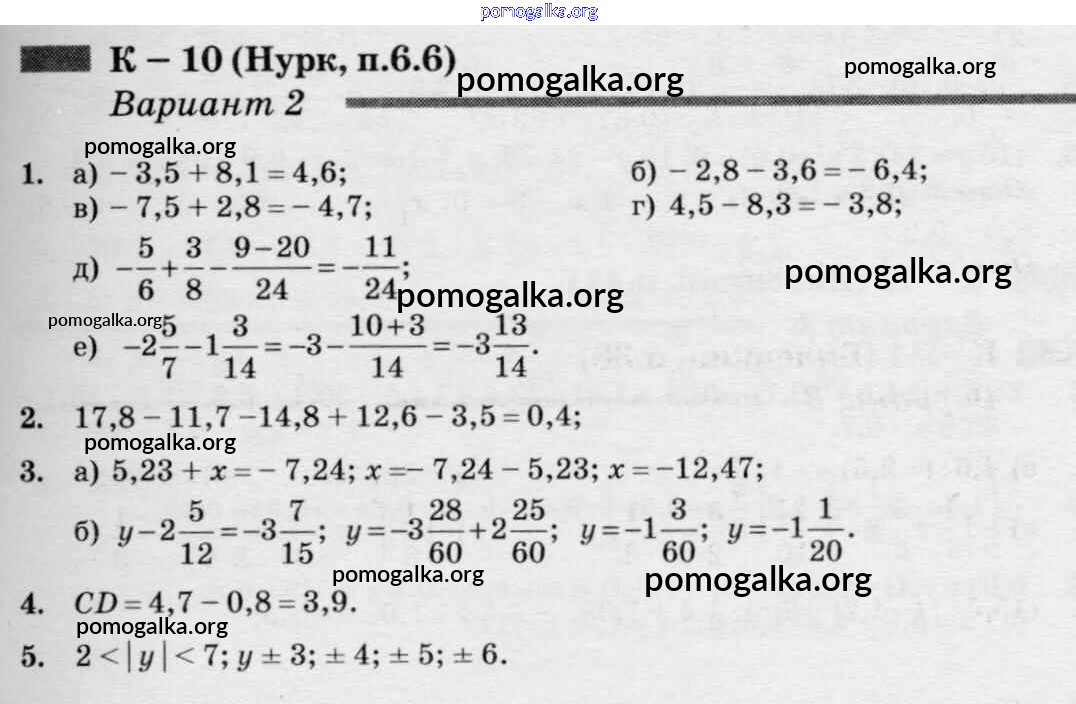 Готовые ответы - Математика 6 класс дидактические материалы Чесноков А.С. - кр-10 к учебнику Нурка 2