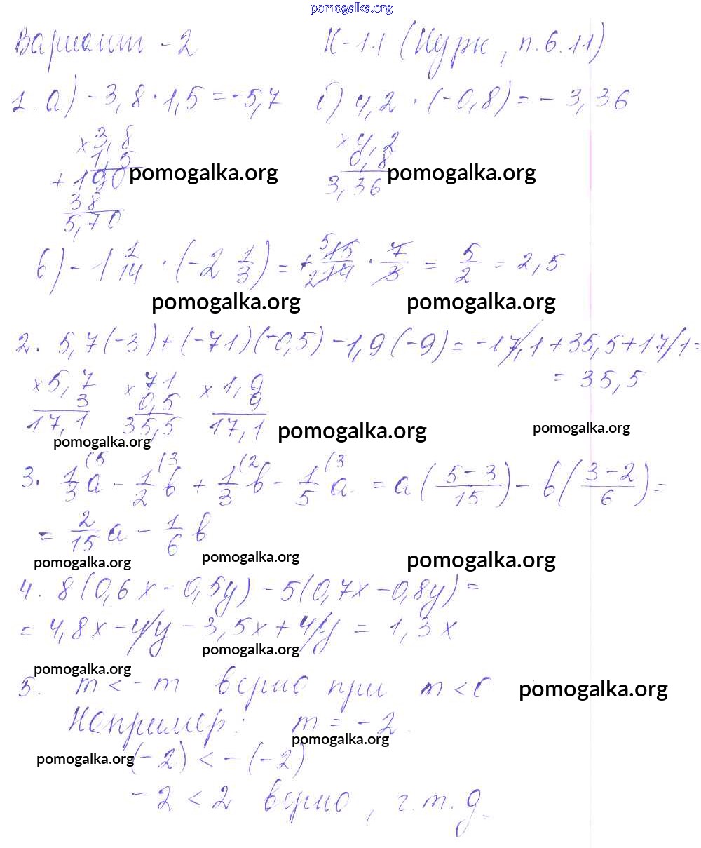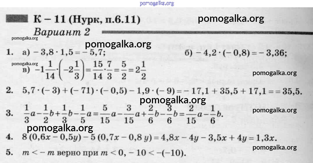 Готовые ответы - Математика 6 класс дидактические материалы Чесноков А.С. - кр-11 к учебнику Нурка 2