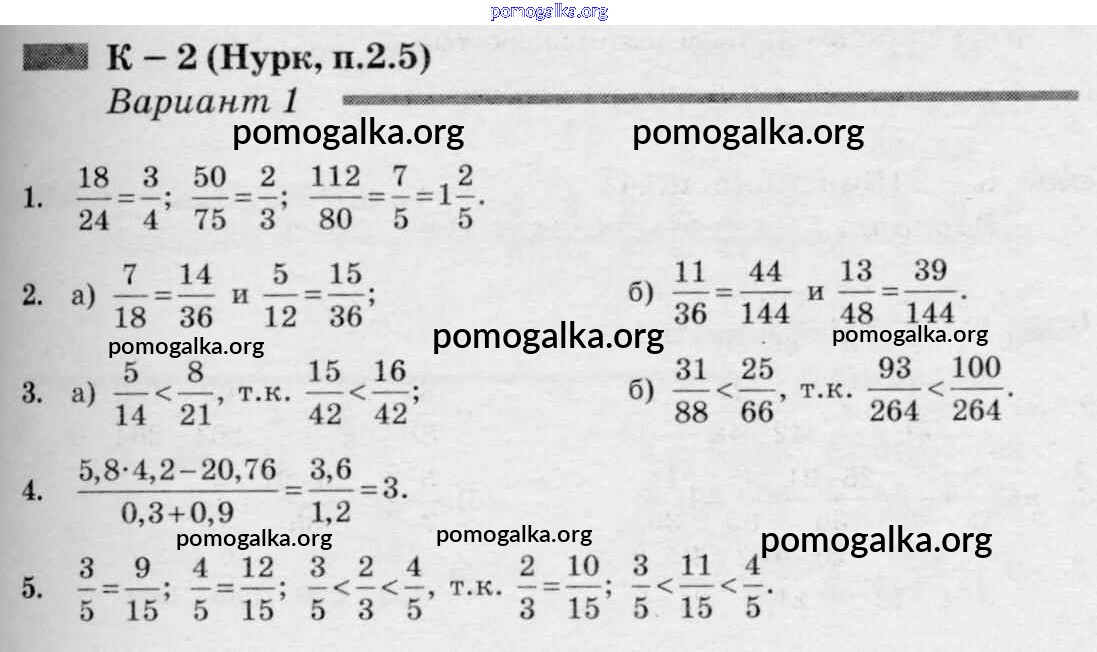 Готовые ответы - Математика 6 класс дидактические материалы Чесноков А.С. - кр-2 к учебнику Нурка 1