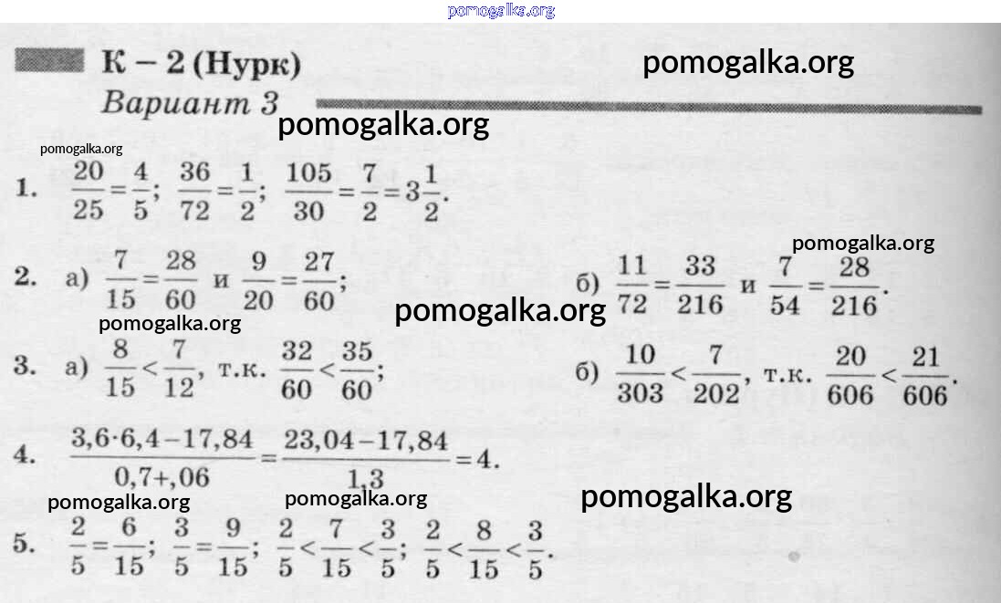 Готовые ответы - Математика 6 класс дидактические материалы Чесноков А.С. - кр-2 к учебнику Нурка 3