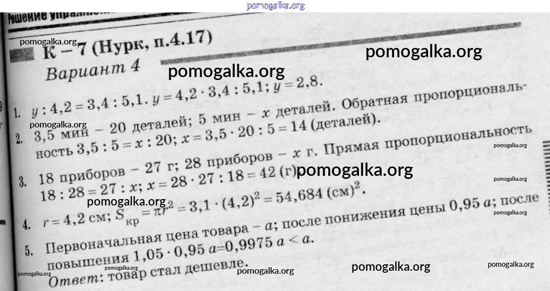 Готовые ответы - Математика 6 класс дидактические материалы Чесноков А.С. - кр-7 к учебнику Нурка 4