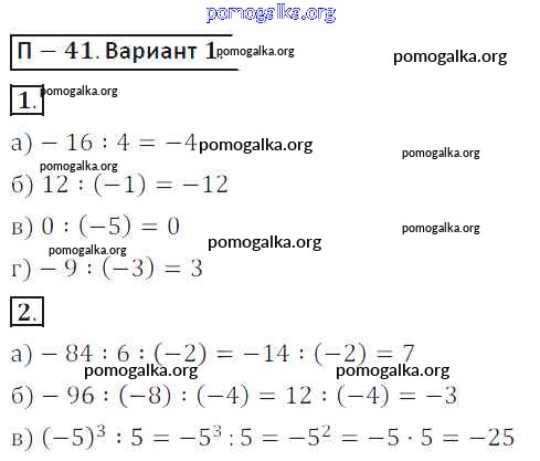 Готовые ответы - Математика 6 класс дидактические материалы Кузнецова Л.В. - пр-41 проверочная работа 1
