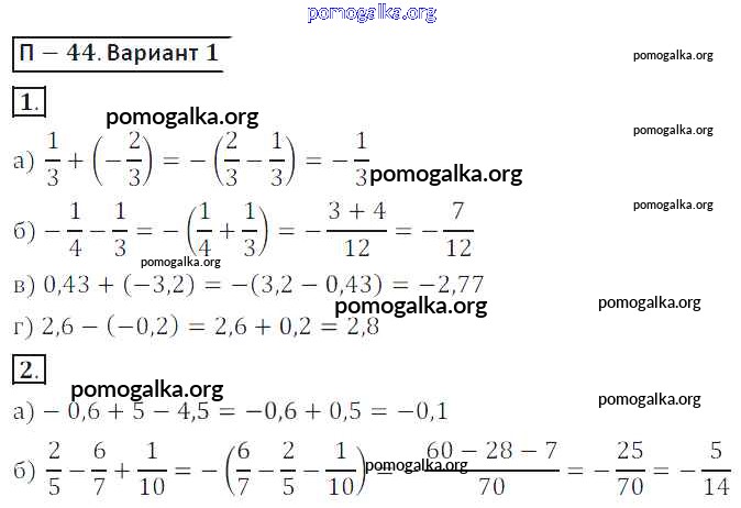 Готовые ответы - Математика 6 класс дидактические материалы Кузнецова Л.В. - пр-44 проверочная работа 1