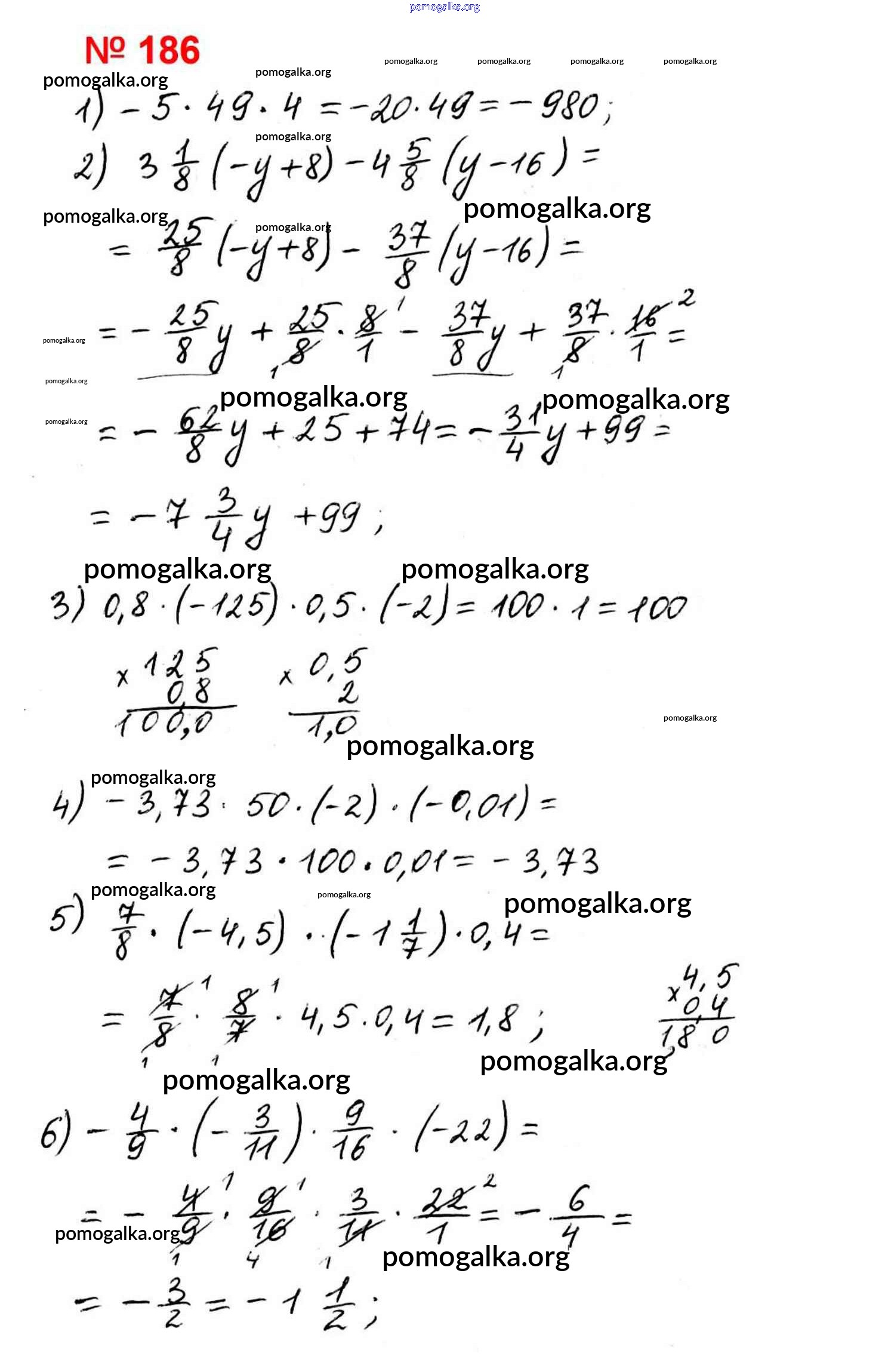 Готовые ответы - Математика 6 класс дидактические материалы Мерзляк А.Г. - вариант 1 упражнения. вариант 186