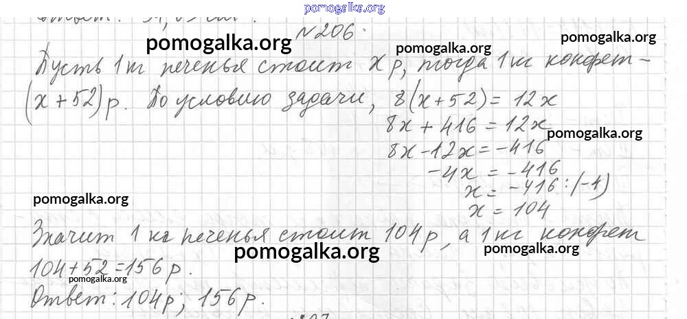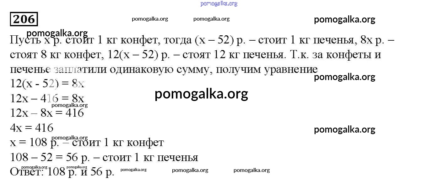 Готовые ответы - Математика 6 класс дидактические материалы Мерзляк А.Г. - вариант 1 упражнения. вариант 206