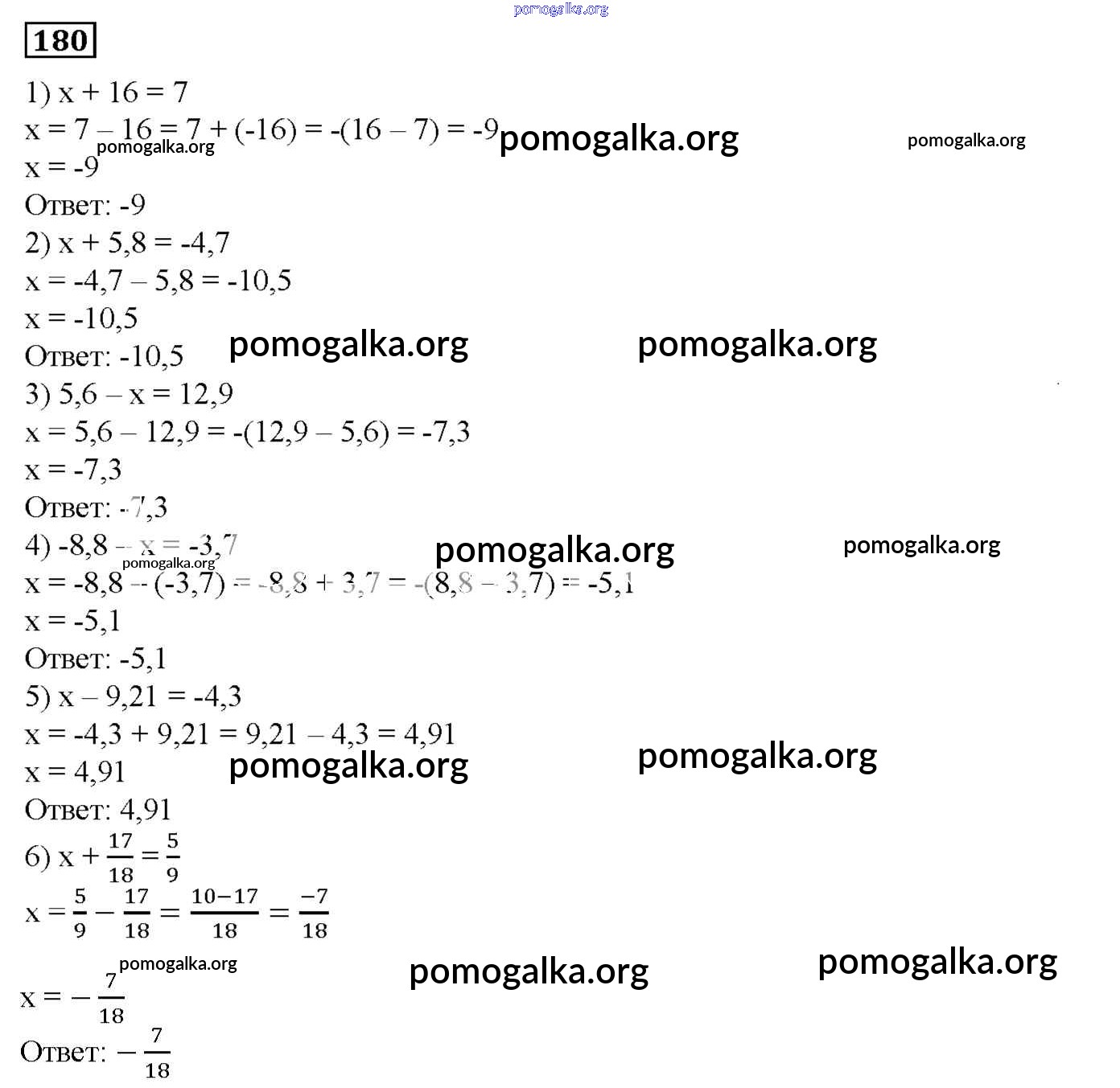 Готовые ответы - Математика 6 класс дидактические материалы Мерзляк А.Г. - вариант 3 упражнения. вариант 180