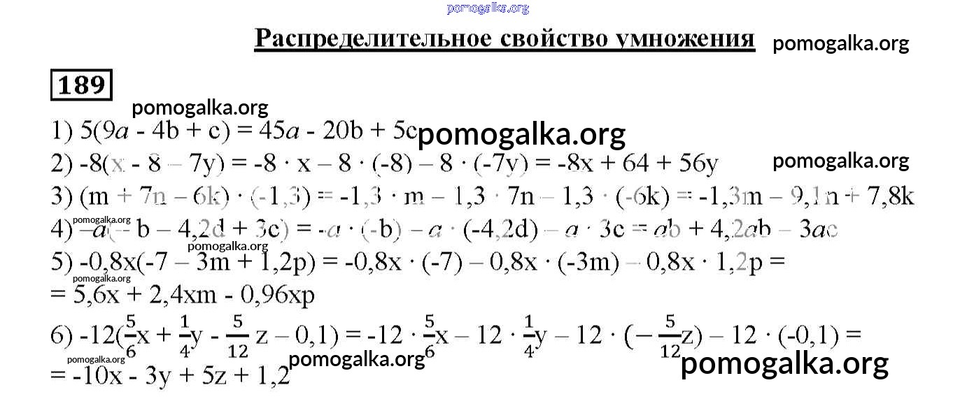 Готовые ответы - Математика 6 класс дидактические материалы Мерзляк А.Г. - вариант 4 упражнения. вариант 189