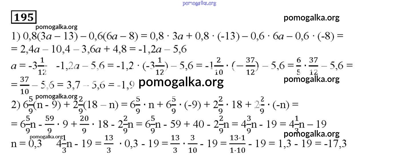 Готовые ответы - Математика 6 класс дидактические материалы Мерзляк А.Г. - вариант 4 упражнения. вариант 195