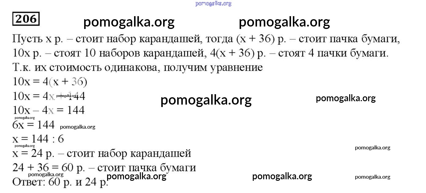Готовые ответы - Математика 6 класс дидактические материалы Мерзляк А.Г. - вариант 4 упражнения. вариант 206