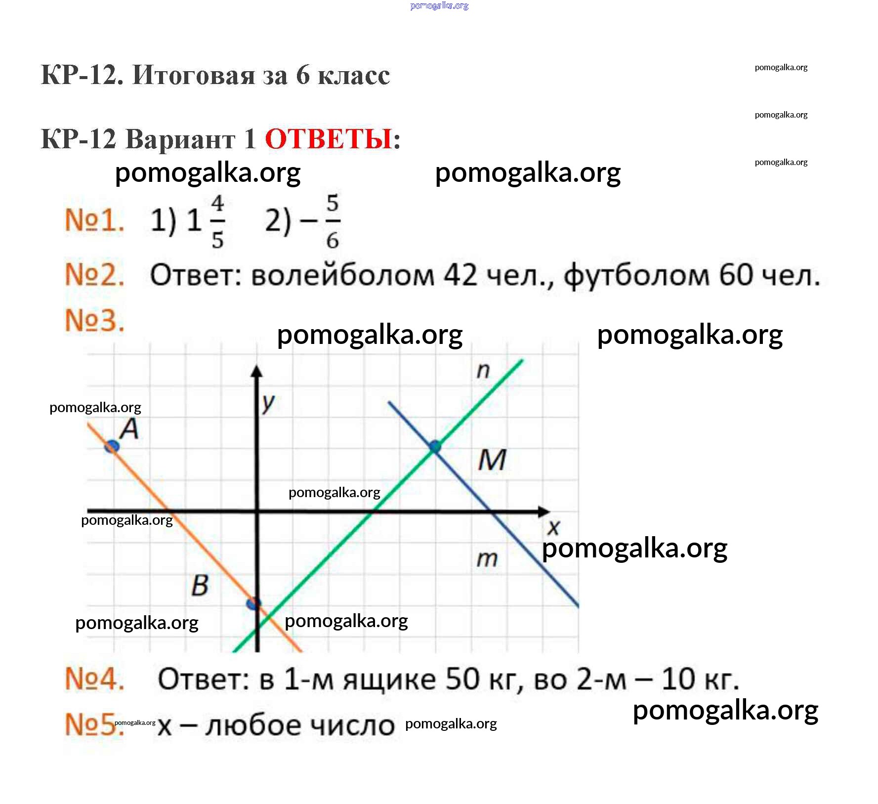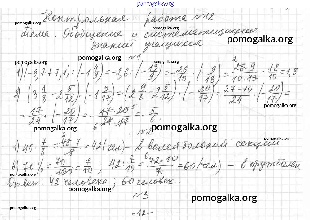 Готовые ответы - Математика 6 класс дидактические материалы Мерзляк А.Г. - кр-12. вариант контрольная работа 1