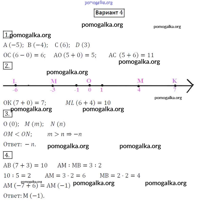 Готовые ответы - Математика 6 класс дидактические материалы Потапов М.К. - ср-12. вариант самостоятельная работа 4