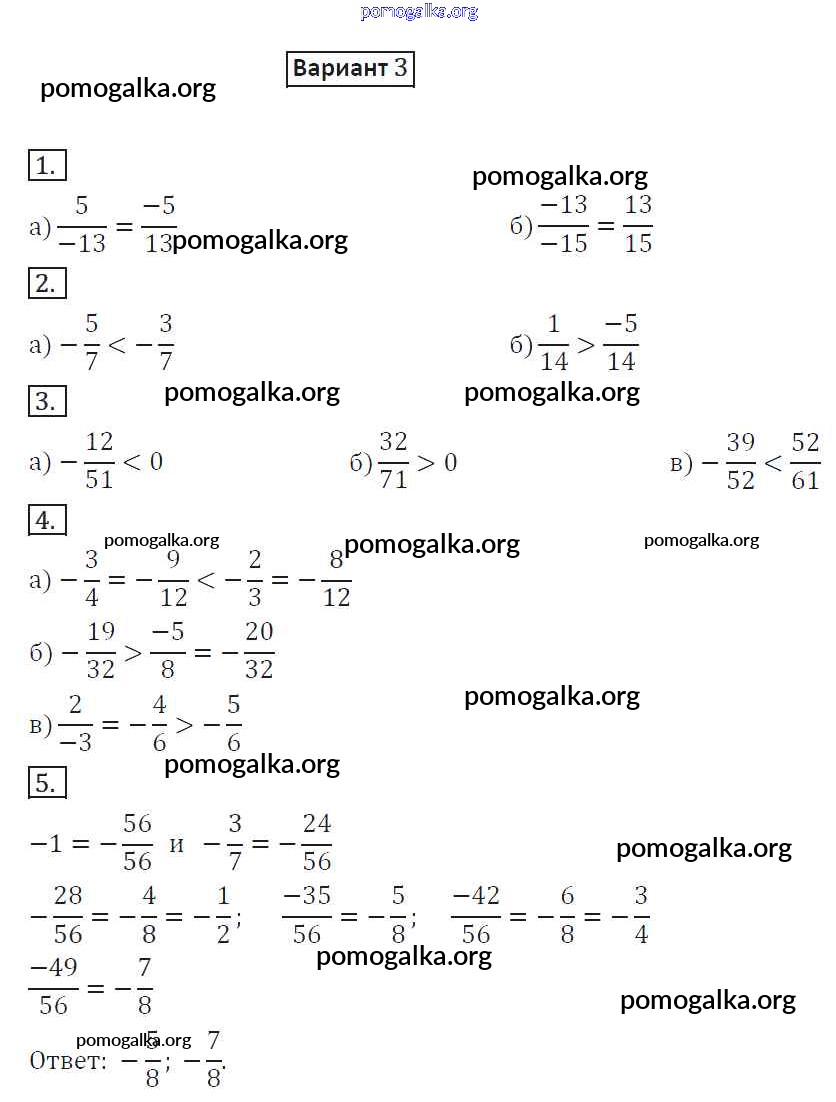 Готовые ответы - Математика 6 класс дидактические материалы Потапов М.К. - ср-14. вариант самостоятельная работа 3