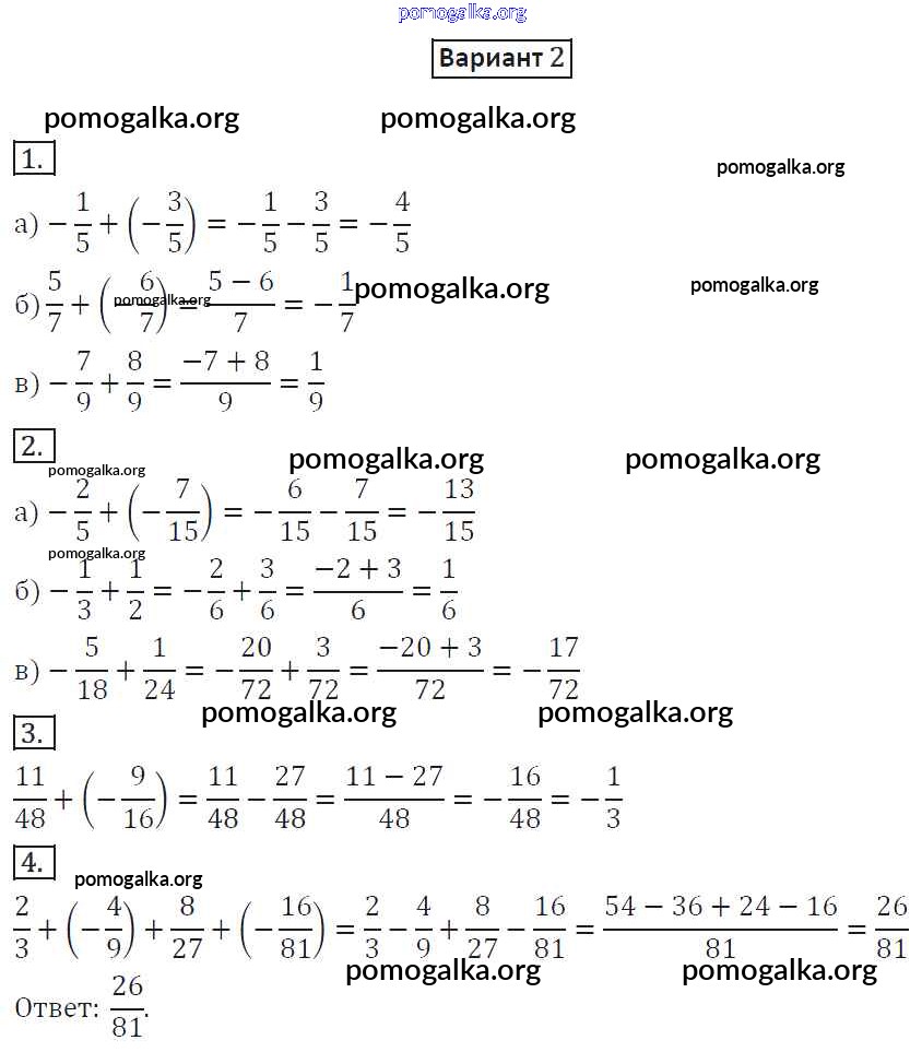 Готовые ответы - Математика 6 класс дидактические материалы Потапов М.К. - ср-15. вариант самостоятельная работа 2
