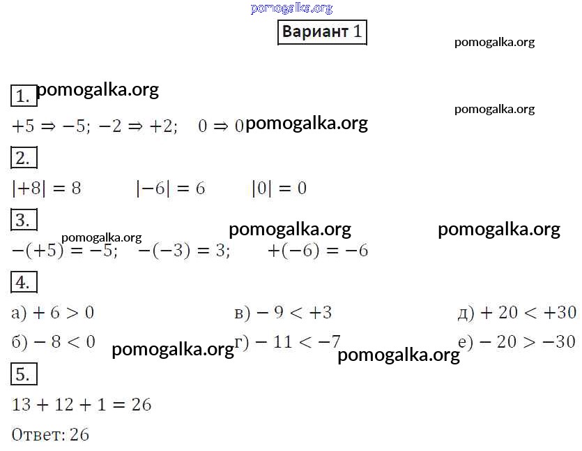 Готовые ответы - Математика 6 класс дидактические материалы Потапов М.К. - ср-8. вариант самостоятельная работа 1