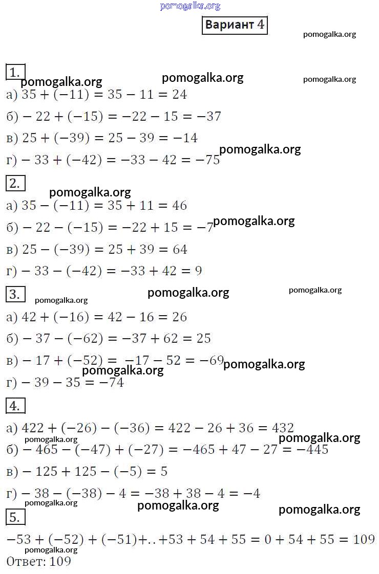Готовые ответы - Математика 6 класс дидактические материалы Потапов М.К. - ср-9. вариант самостоятельная работа 4