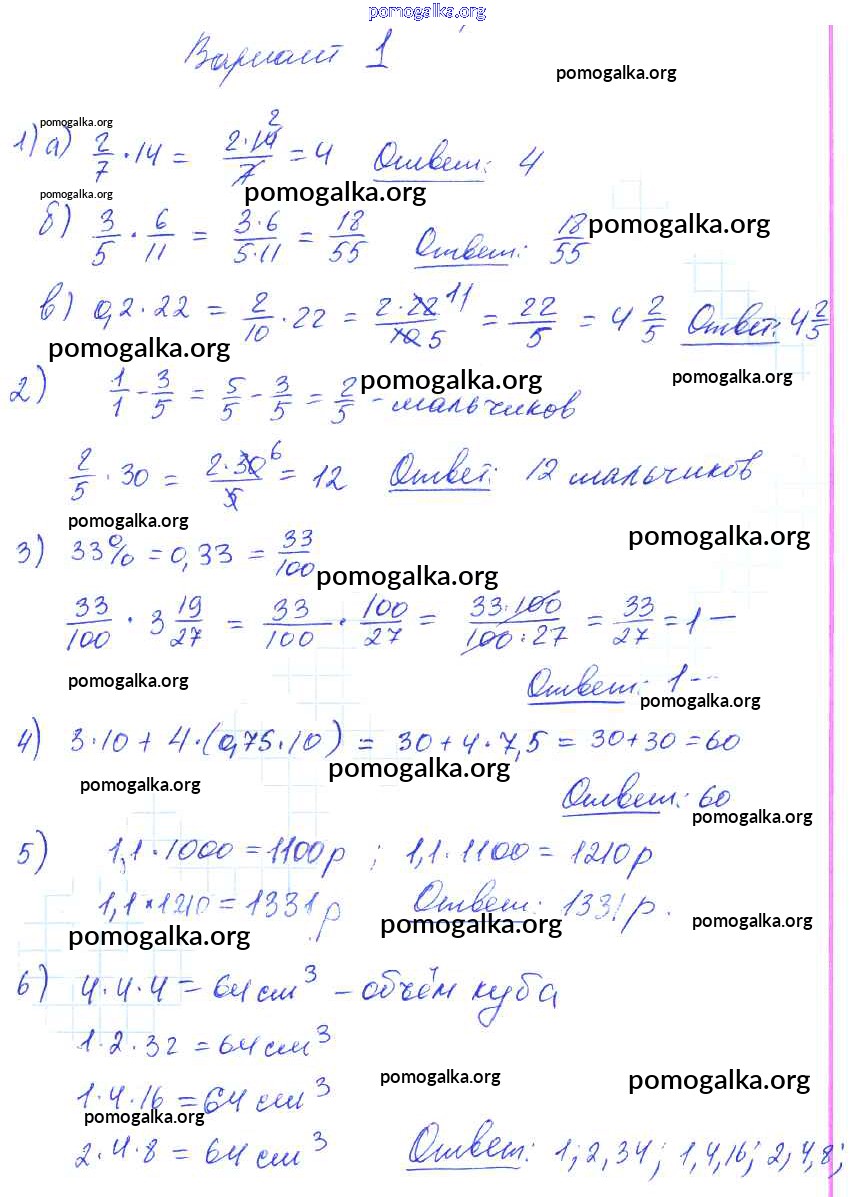 Готовые ответы - Математика 6 класс дидактические материалы Попов М.А. ( к новому уч. Виленкина Н.Я.) - ср-14. вариант самостоятельная работа 1