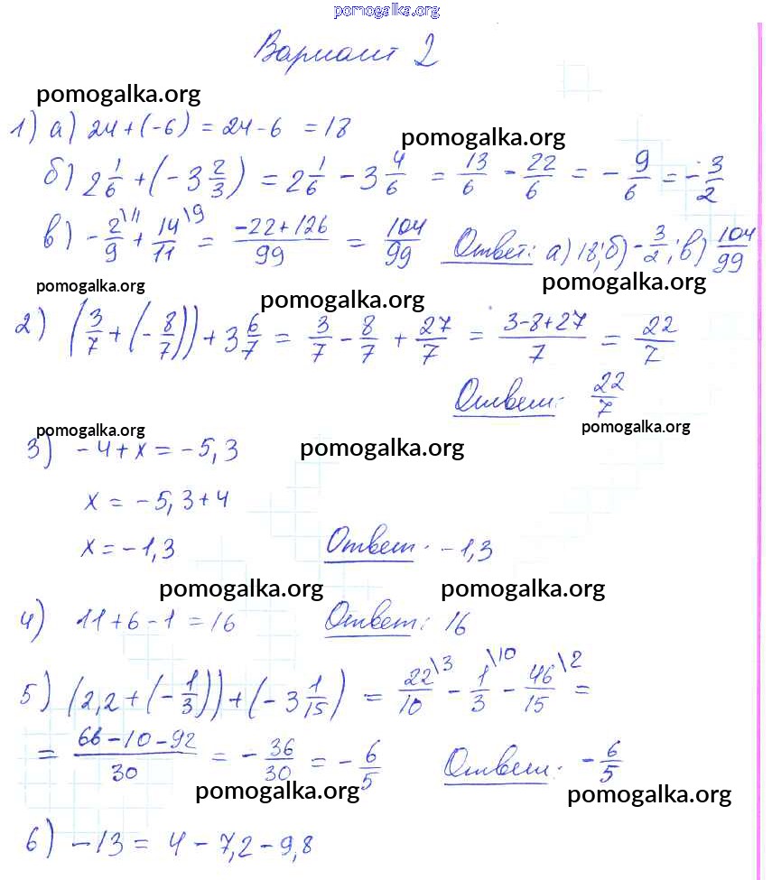 Готовые ответы - Математика 6 класс дидактические материалы Попов М.А. ( к новому уч. Виленкина Н.Я.) - ср-29. вариант самостоятельная работа 2