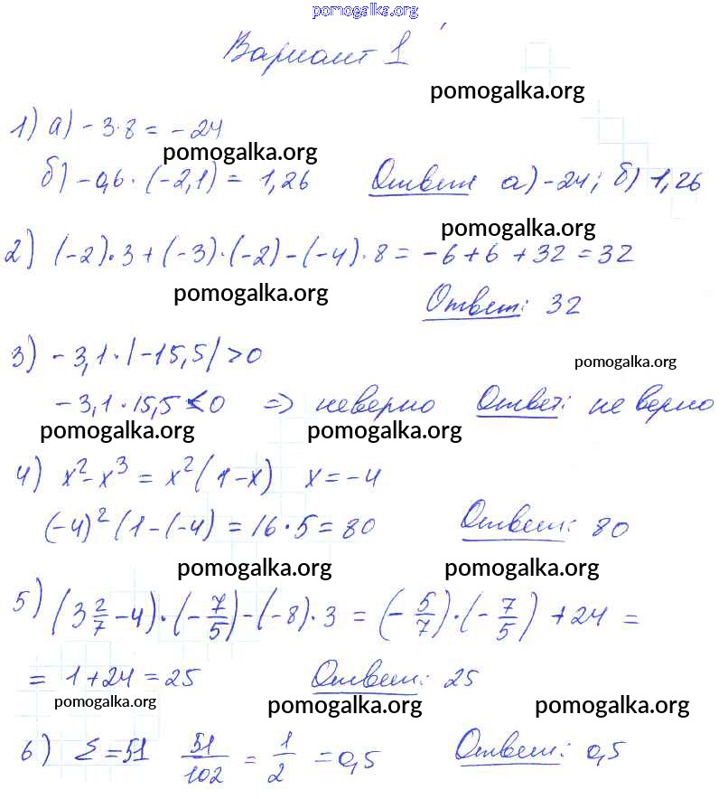 Готовые ответы - Математика 6 класс дидактические материалы Попов М.А. ( к новому уч. Виленкина Н.Я.) - ср-31. вариант самостоятельная работа 1