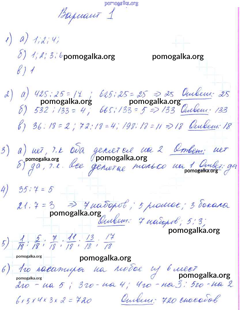 Готовые ответы - Математика 6 класс дидактические материалы Попов М.А. ( к новому уч. Виленкина Н.Я.) - ср-6. вариант самостоятельная работа 1