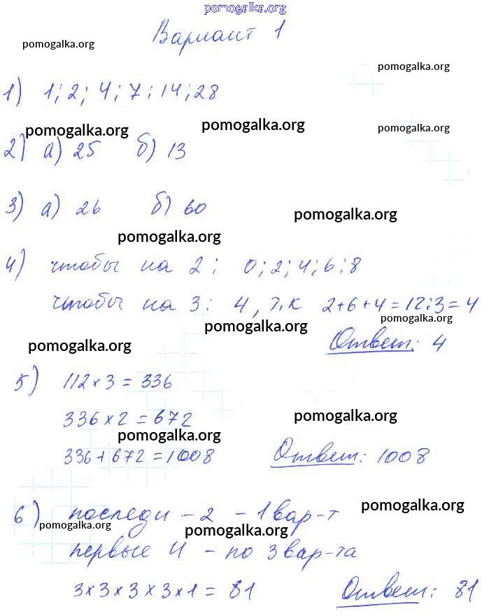 Готовые ответы - Математика 6 класс дидактические материалы Попов М.А. ( к новому уч. Виленкина Н.Я.) - кр-1. вариант контрольная работа 1