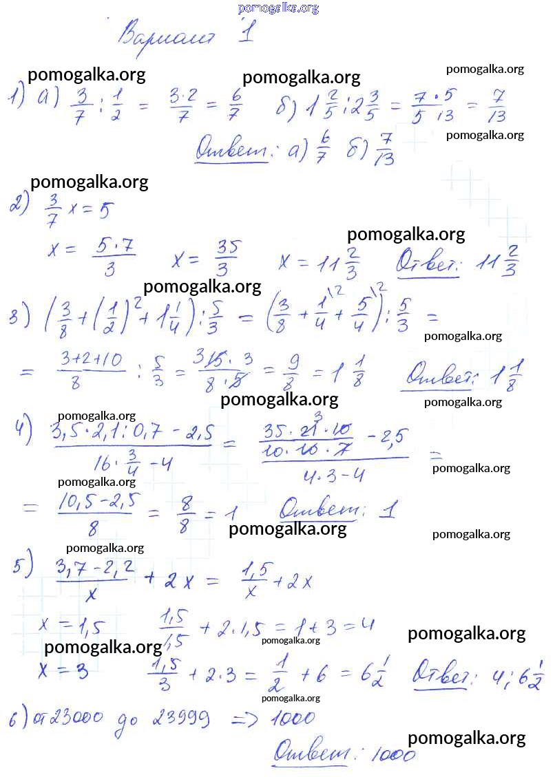Готовые ответы - Математика 6 класс дидактические материалы Попов М.А. ( к новому уч. Виленкина Н.Я.) - кр-4. вариант контрольная работа 1