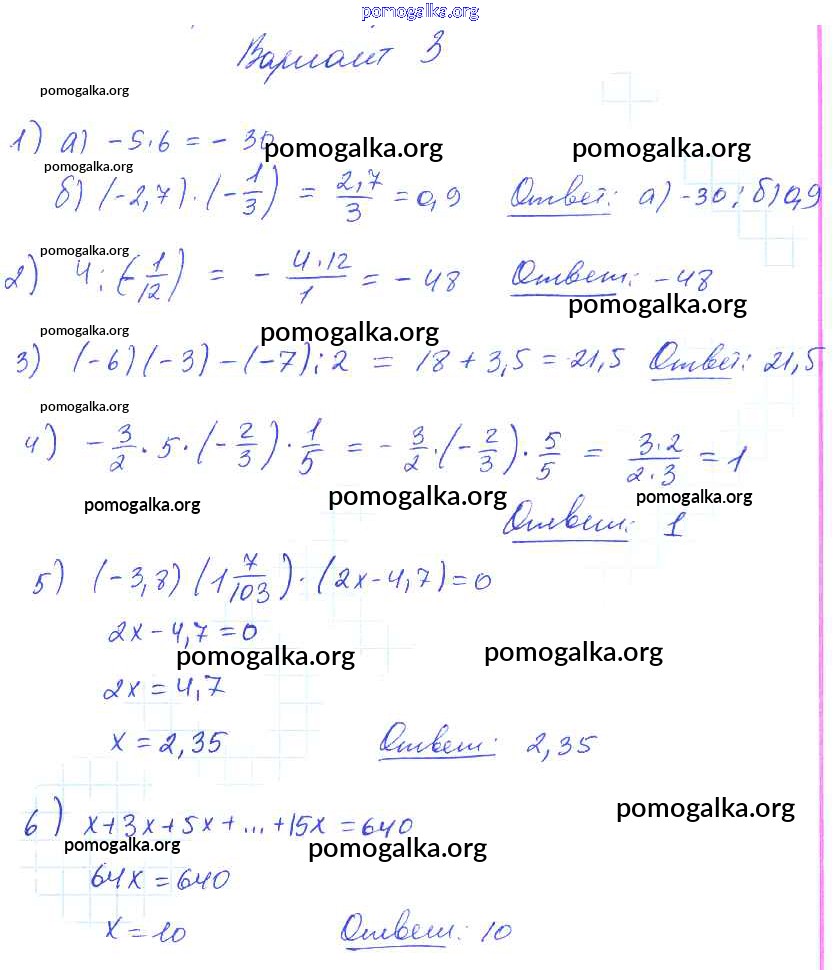 Готовые ответы - Математика 6 класс дидактические материалы Попов М.А. ( к новому уч. Виленкина Н.Я.) - кр-8. вариант контрольная работа 3