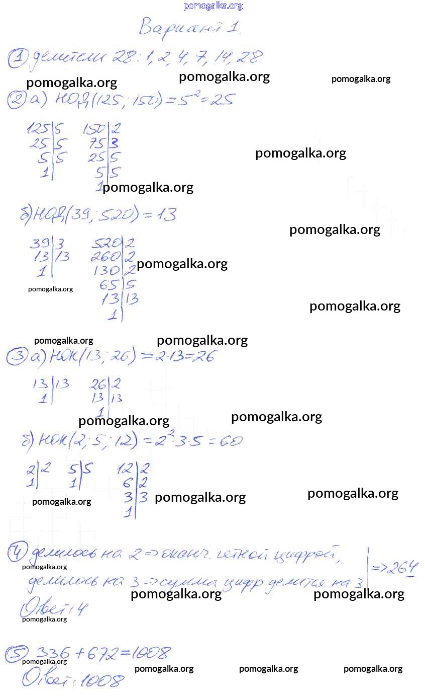 Готовые ответы - Математика 6 класс контрольные и самостоятельные работы Попов М.А. ( к уч. Виленкина Н.Я.) - кр-1. вариант контрольная работа 1