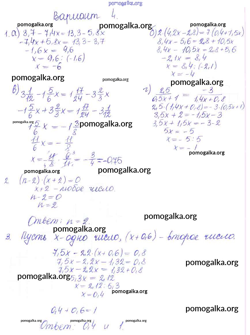 Готовые ответы - Математика 6 класс контрольные и самостоятельные работы Журавлев С.Г. - ср-41. вариант самостоятельная работа 4