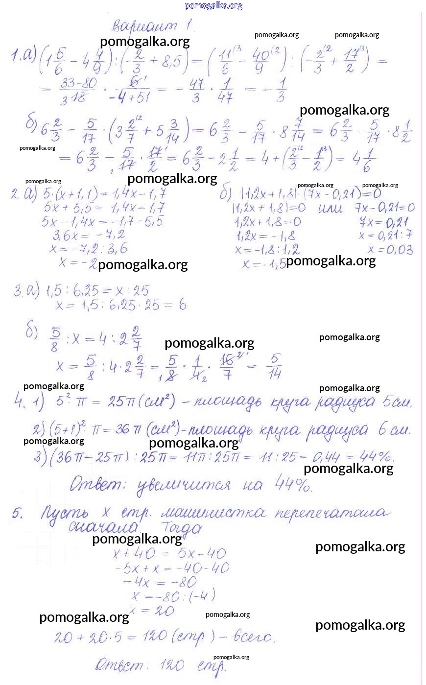 Готовые ответы - Математика 6 класс контрольные и самостоятельные работы Журавлев С.Г. - кр-10. вариант контрольная работа 1