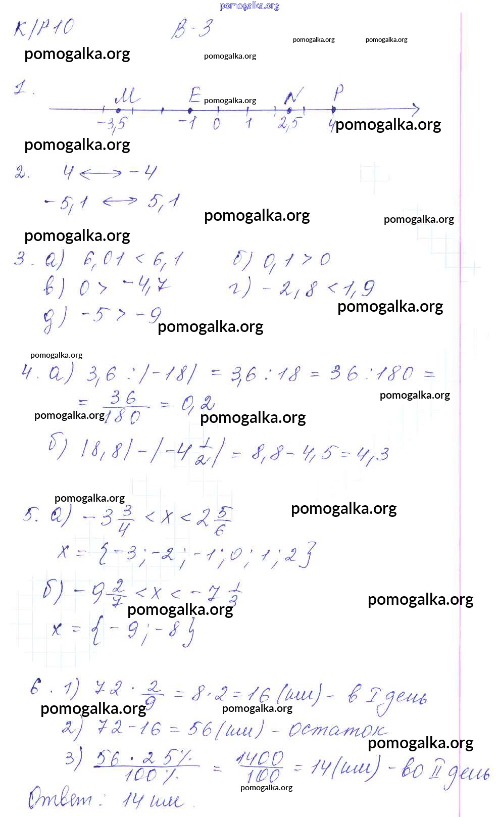Готовые ответы - Математика 6 класс контрольные работы Дудницын Ю.П. - кр-10. вариант 3