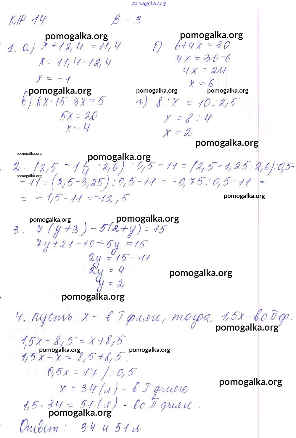 Готовые ответы - Математика 6 класс контрольные работы Дудницын Ю.П. - кр-14. вариант 3