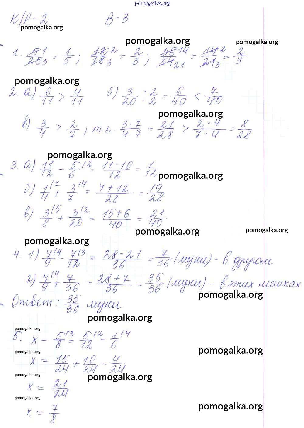 Готовые ответы - Математика 6 класс контрольные работы Дудницын Ю.П. - кр-2. вариант 3