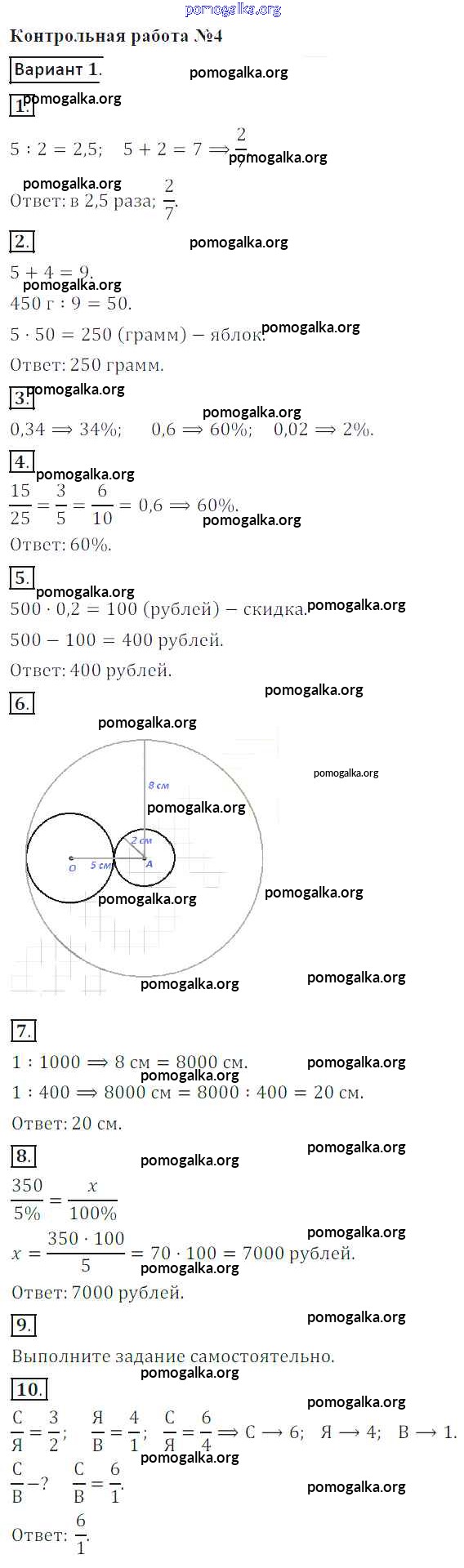 Готовые ответы - Математика 6 класс контрольные работы Кузнецова Л.В. - кр-4. вариант 1