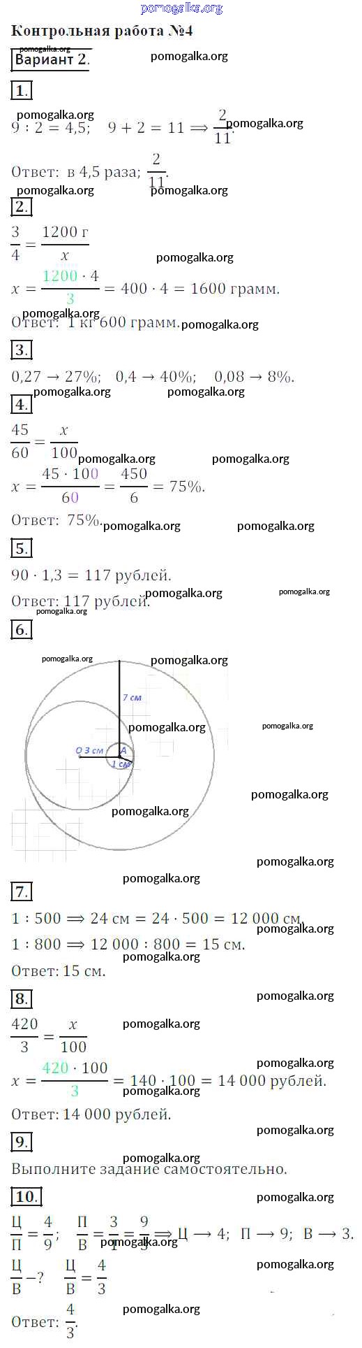 Готовые ответы - Математика 6 класс контрольные работы Кузнецова Л.В. - кр-4. вариант 2