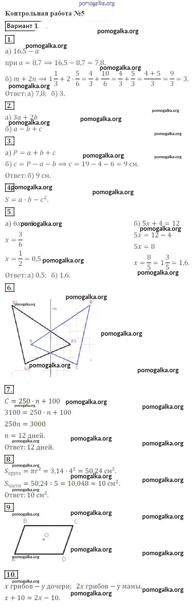 Готовые ответы - Математика 6 класс контрольные работы Кузнецова Л.В. - кр-5. вариант 1