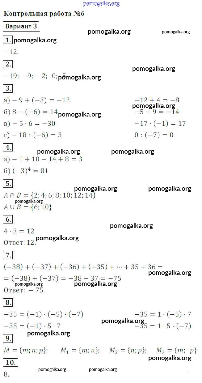 Готовые ответы - Математика 6 класс контрольные работы Кузнецова Л.В. - кр-6. вариант 3