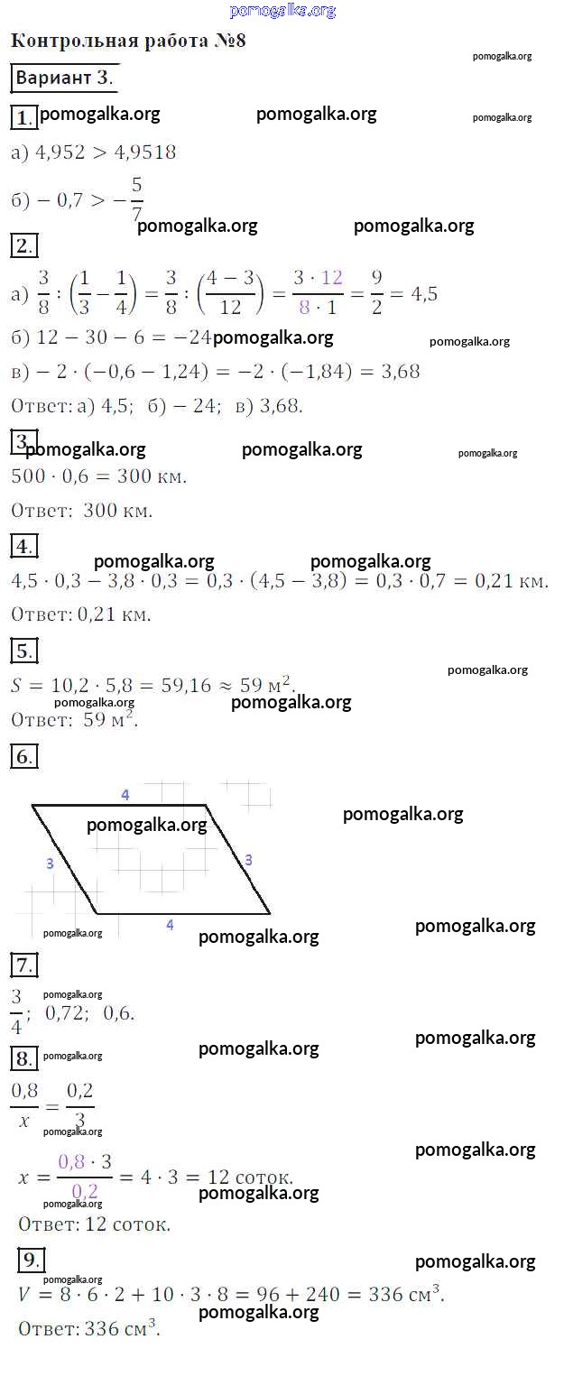 Готовые ответы - Математика 6 класс контрольные работы Кузнецова Л.В. - кр-8. вариант 3