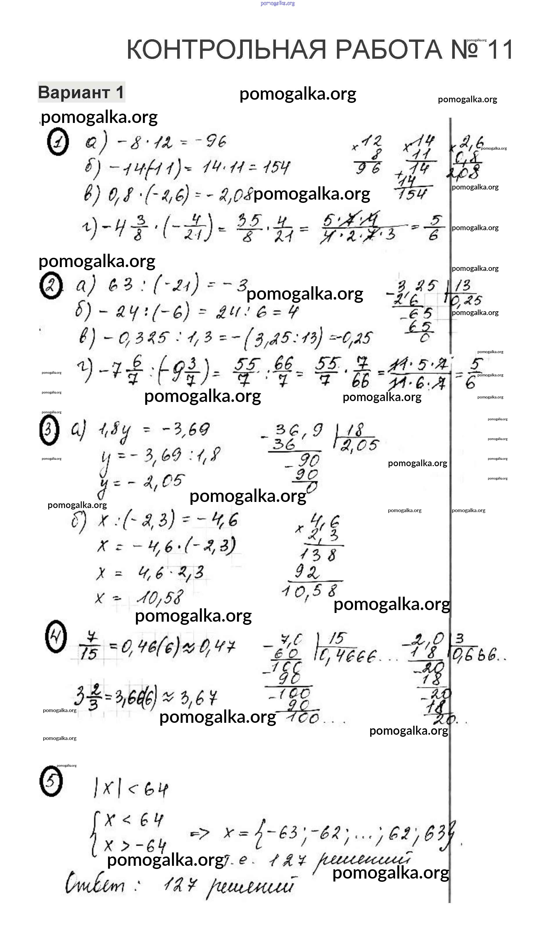 Готовые ответы - Математика 6 класс контрольные работы Жохов В.И. - кр-11. вариант 1