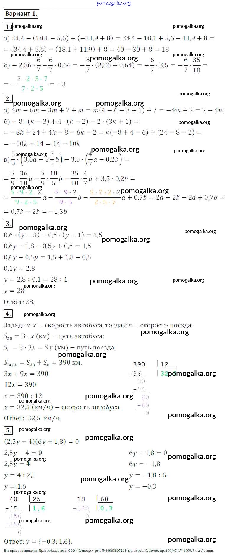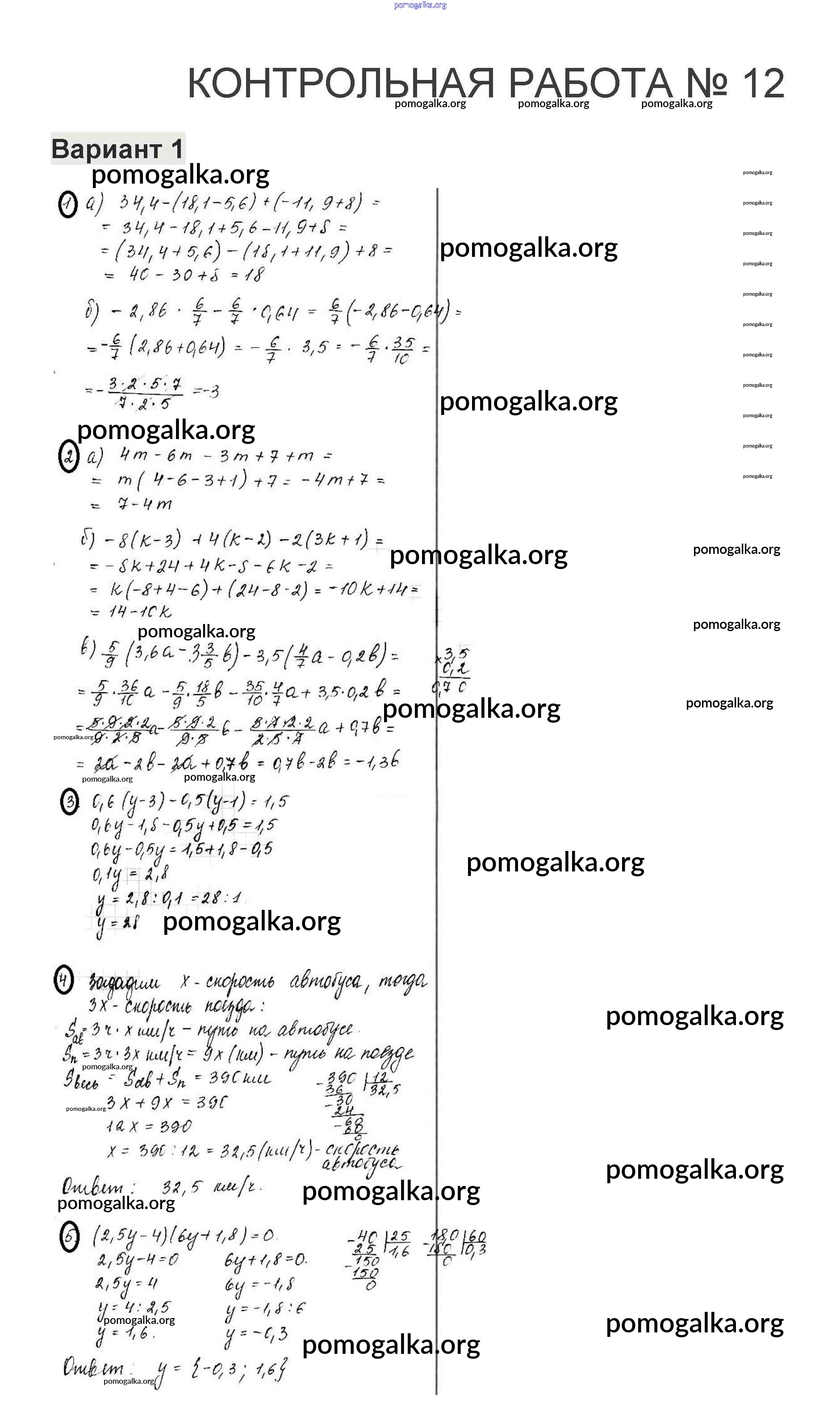Готовые ответы - Математика 6 класс контрольные работы Жохов В.И. - кр-12. вариант 1