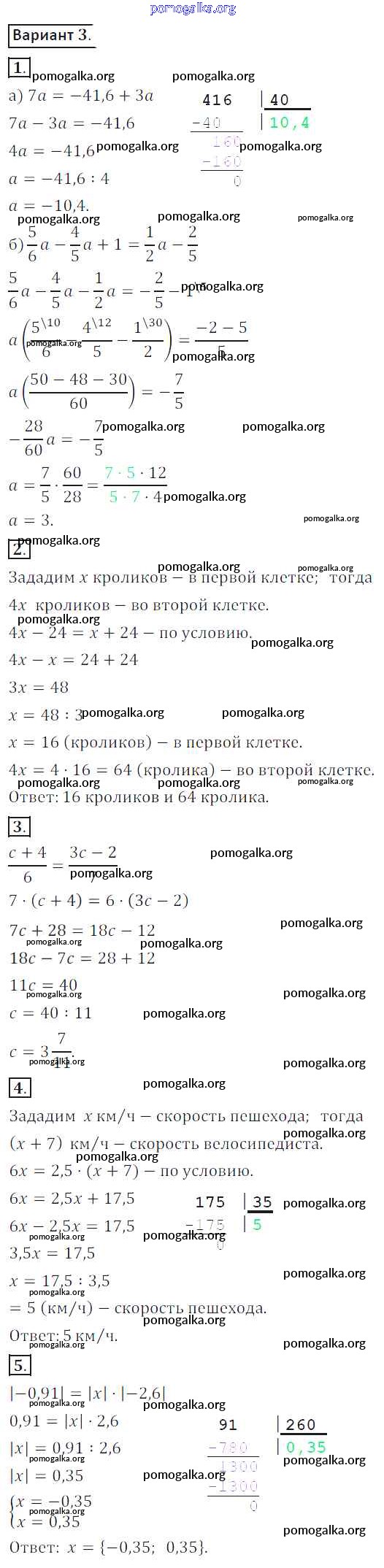Готовые ответы - Математика 6 класс контрольные работы Жохов В.И. - кр-13. вариант 3