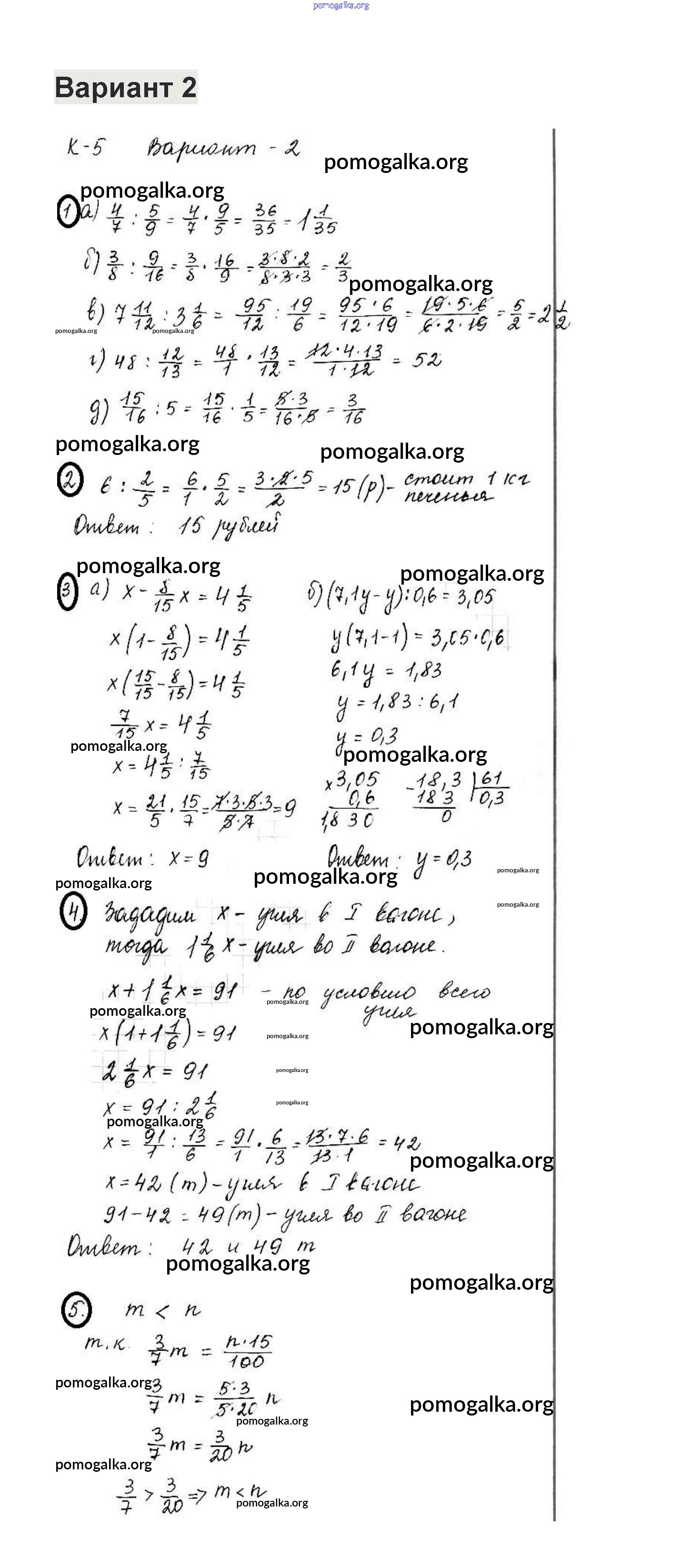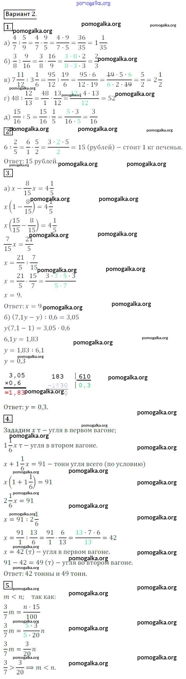 Готовые ответы - Математика 6 класс контрольные работы Жохов В.И. - кр-5. вариант 2