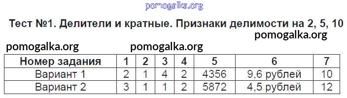 Готовые ответы - Математика 6 класс КИМ Глазков Ю.А. - тест 1