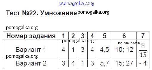 Готовые ответы - Математика 6 класс КИМ Глазков Ю.А. - тест 22