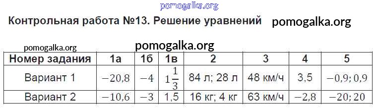 Готовые ответы - Математика 6 класс КИМ Глазков Ю.А. - контрольная работа 13