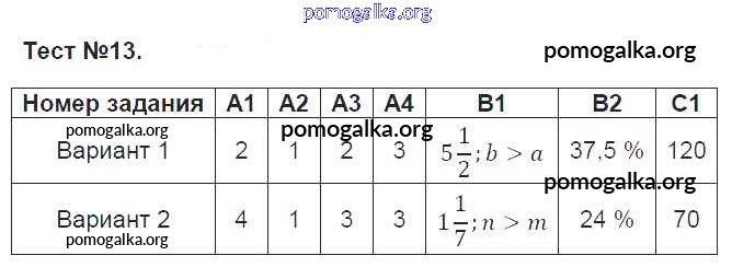 Готовые ответы - Математика 6 класс КИМ Попова Л.П. - тест 13
